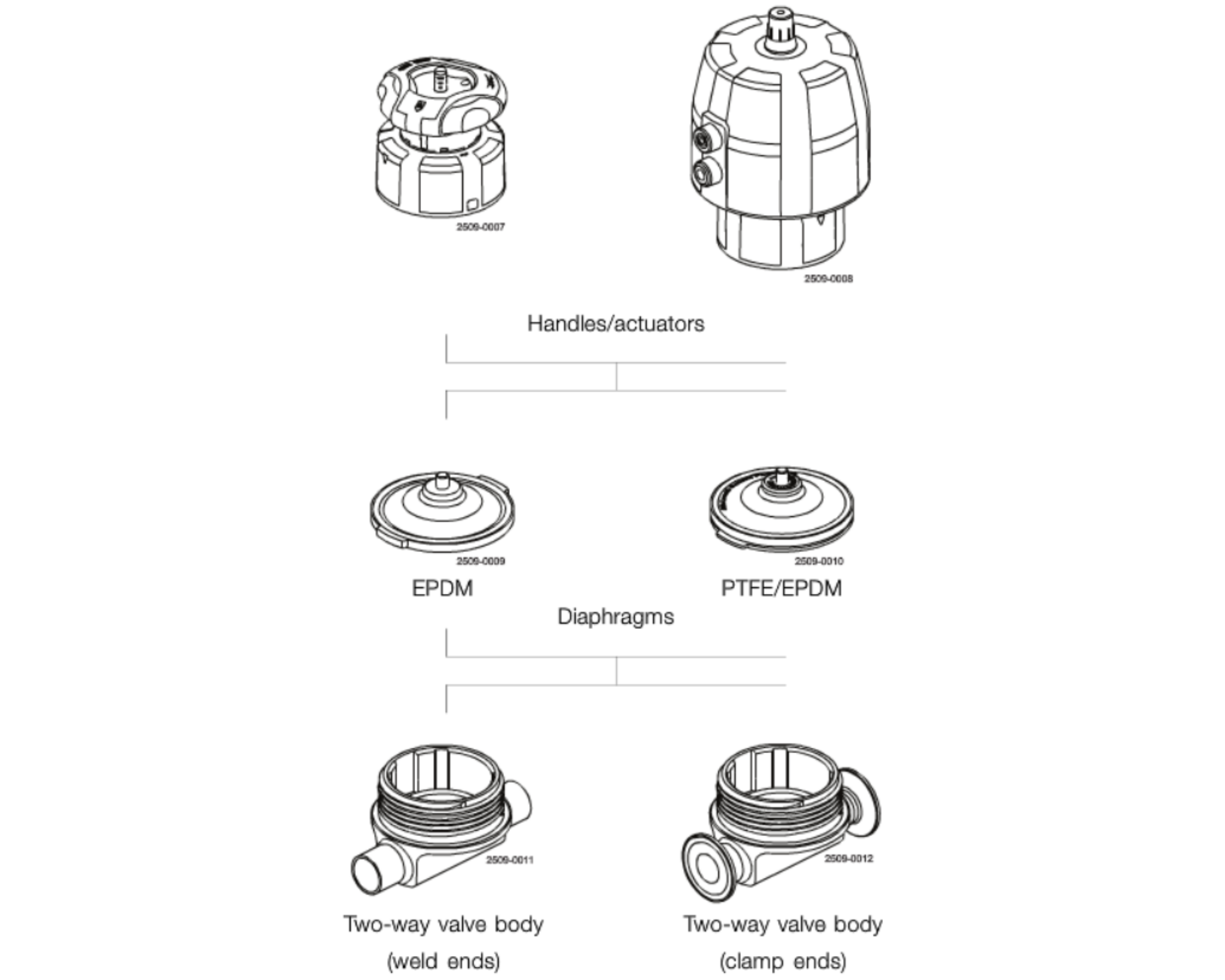 Unique DV-P memiliki desain modular yang terdiri dari: bodi katup, diafragma, pegangan atau aktuator, serta unit tambahan untuk otomatisasi dan kontrol bila diperlukan.